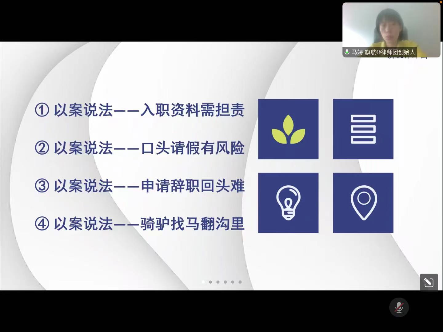 分享会上,马娉律师针对同学们在求职过程中遇到的常见问题进行了专业而细致的解读。针对在选择公司单位、阅读招聘信息、简历投递、面试过程中的风险防范,公司社保缴纳以及公司单位保险等问题,她结合现实经典案例,就求职、入职、履职、辞职过程中可能存在的风险点进行讲解。