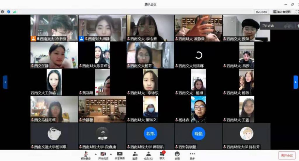 本次活动通过西南交大马院19级硕士班与西南财大马院19级硕士班的集体学习、线上讨论的方式,加强了两校之间的交流共建,促进两院学生深入学习党的十九届五中全会精神,把握会议精神的丰富内涵和核心要义,切实增强贯彻落实政治自觉、思想自觉、行动自觉,践行共产党人的初心与使命。
